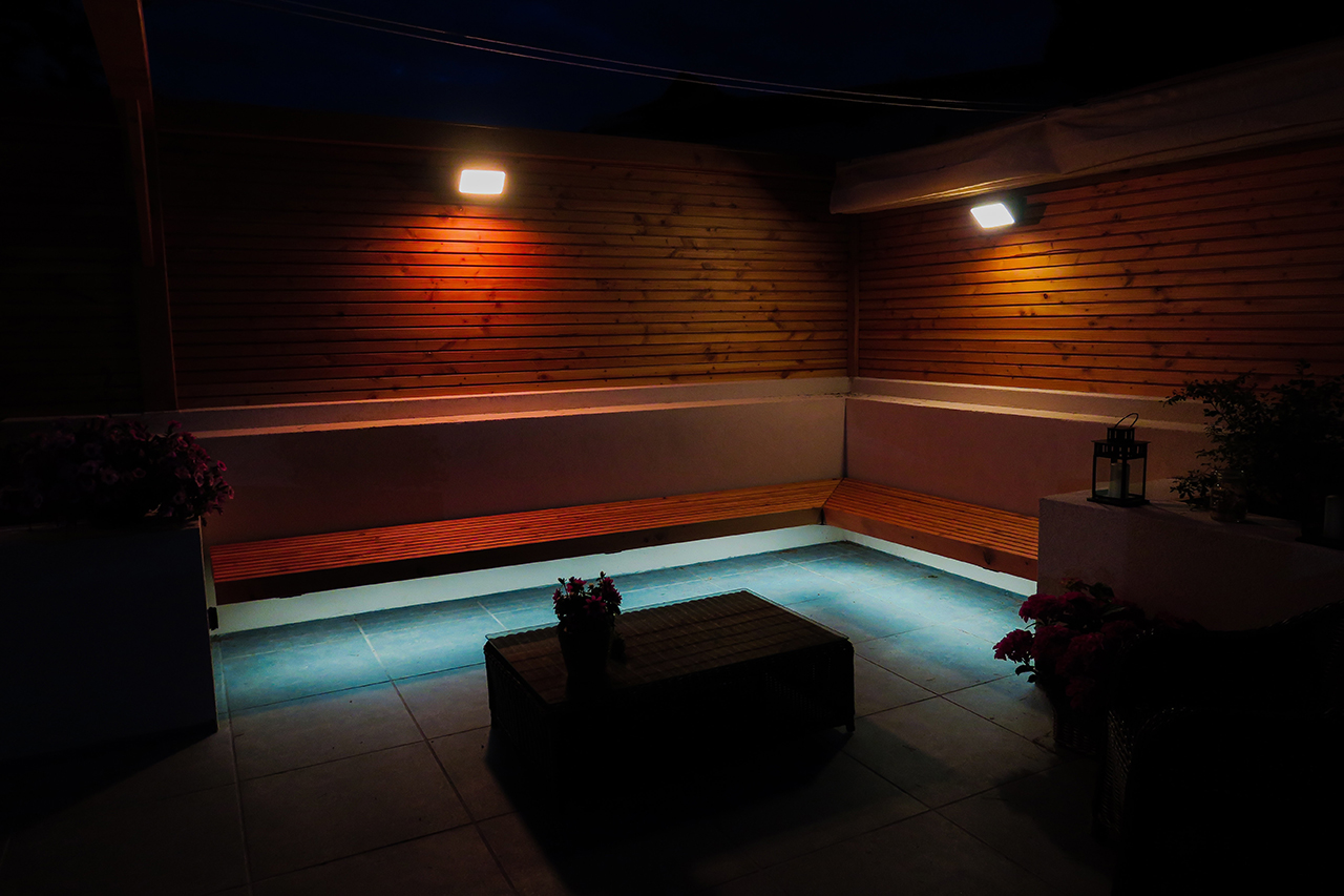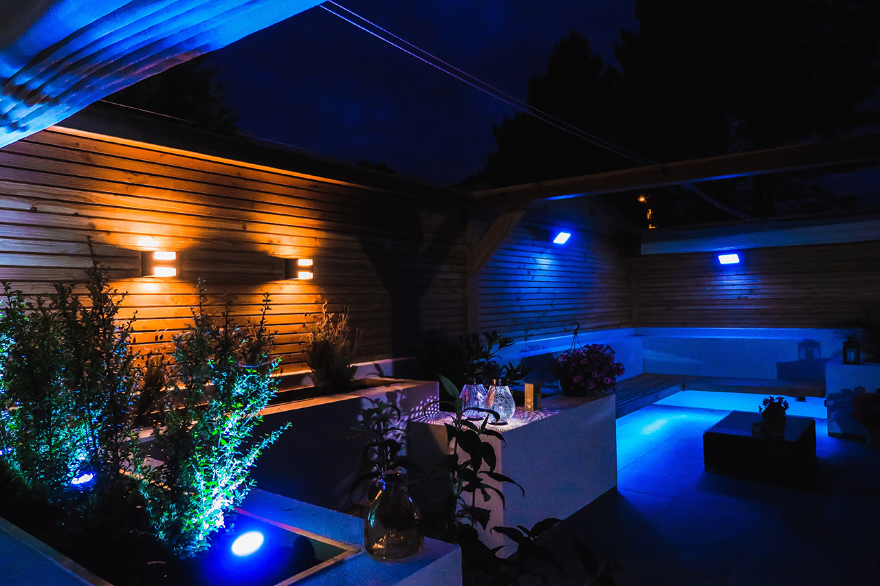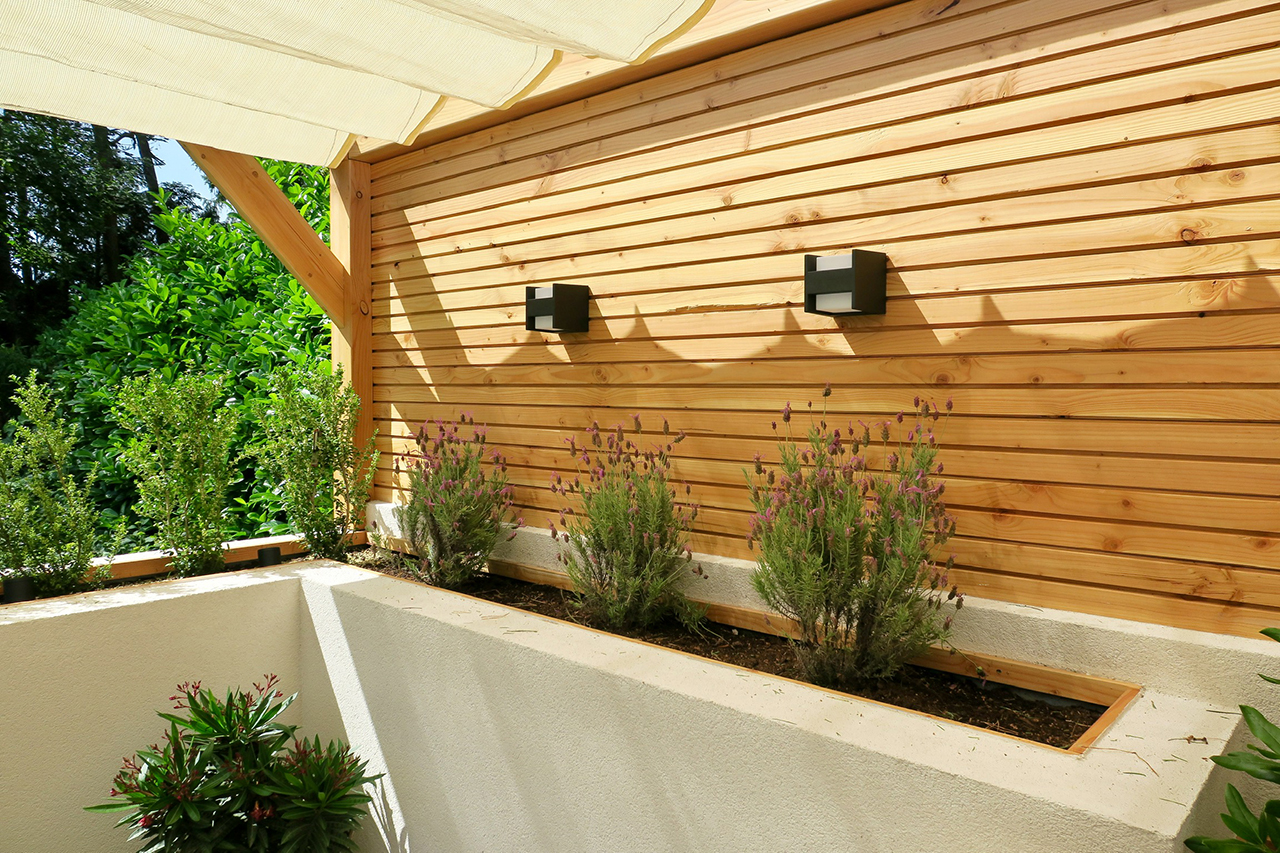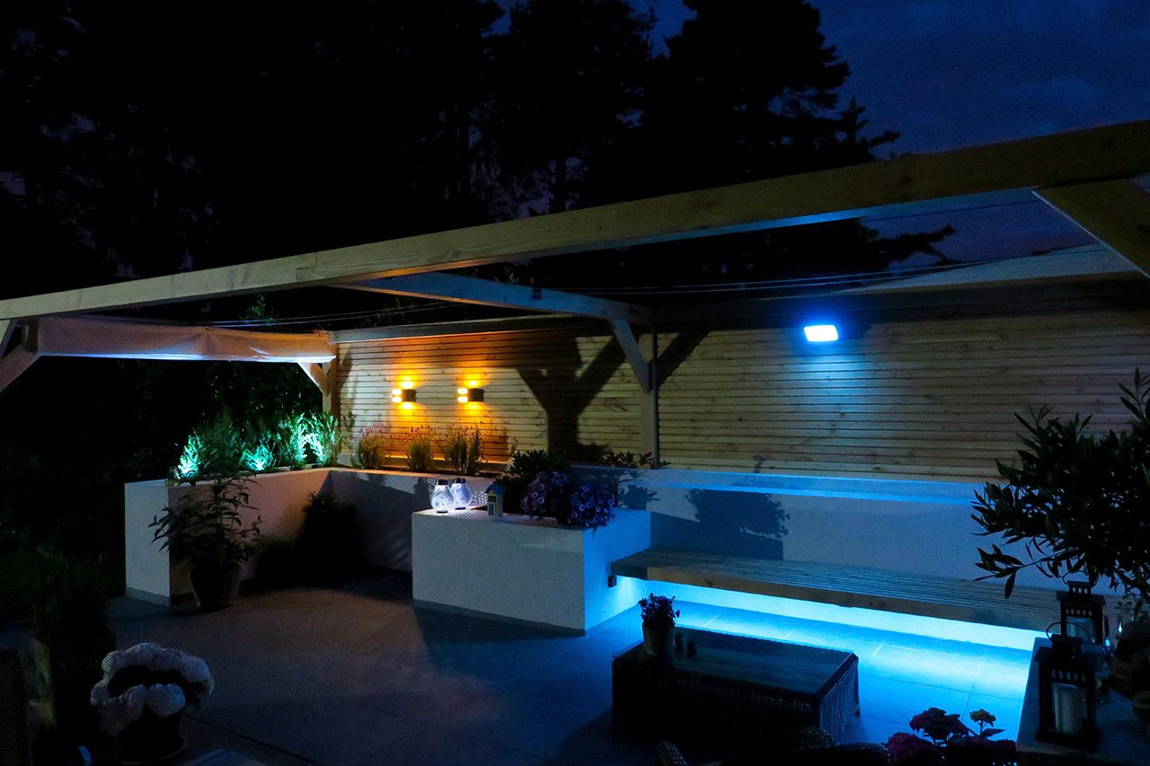 Deze klanten hechtten veel belang aan een mooie tuin, waar ze volledig tot rust konden komen. Om die reden lieten ze al een vijver en terras aanleggen, maar er ontbrak nog iets. Wij kregen dan ook de opdracht om een lounge te ontwerpen waar ze niet alleen konden ontspannen, maar ook energie opdoen. Bij het maken van dit ontwerp hielden we uiteraard rekening met het terras en de vijver, om tot een mooi geheel te komen. VTkamerontwerp stond niet alleen in voor het ontwerp, maar eveneens voor de volledige uitvoering; zijnde de houten constructie, het plaatsen van de tegels, het bijbehorend metselwerk en het voorzien van de nodige elektriciteit, zitbanken en zonnewering. De buitenoppervlakte wordt nu optimaal benut en zorgt ervoor dat het zowel overdag als ’s avonds – met of zonder het gezelschap van vrienden - aangenaam vertoeven is in de tuin.