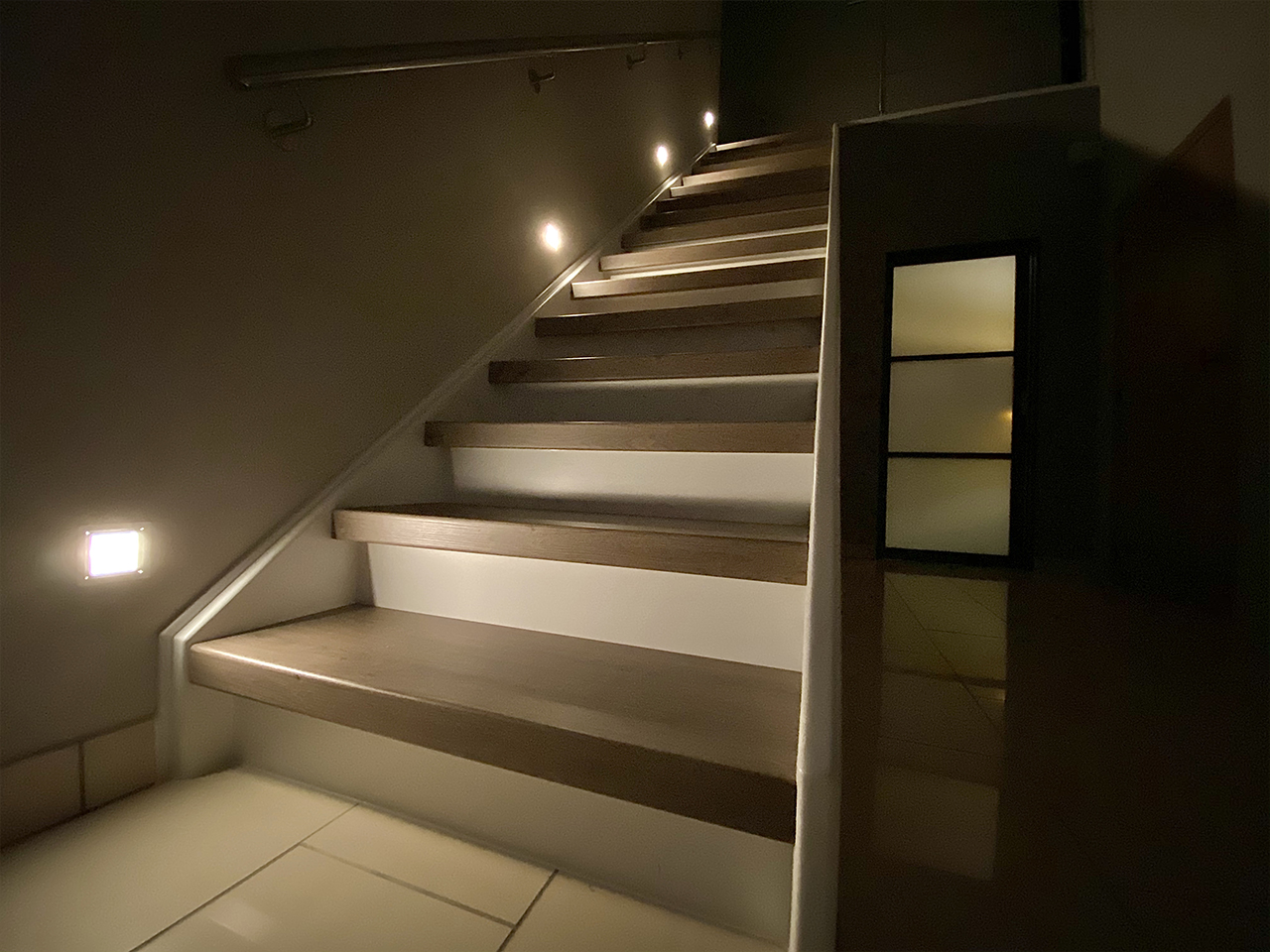 Tot slot werd ook de volledige trap onder handen genomen.  Hij kreeg niet alleen een nieuw laagje verf, maar ook tredecovers.  In deze traphal werd dus niet alleen de ‘verloren’ ruimte optimaal ingevuld; door het gebruik van de juiste materialen werd de ruimte niet alleen ‘opengetrokken’, maar heeft deze nu ook een moderne en frisse uitstraling.