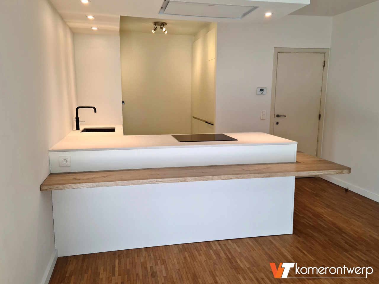 Alvorens dit appartement in Antwerpen-Zuid te verhuren, liet de eigenaar VTkamerontwerp de keuken onder handen nemen.